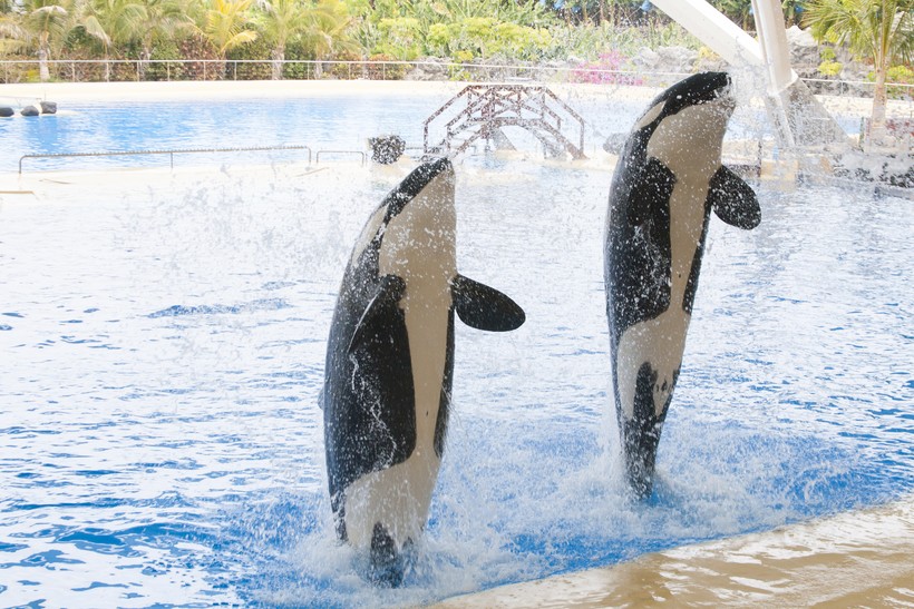 Дельфины проделывают, в общем-то, весь стандартный набор трюков; очень жаль, что здесь не подпускают пообщаться с ними поближе, как в парке «Ocean World» в Доминикане. К сожалению, когда мы были в Лоро Парке, вещей, подобных «поплавать с дельфинами» или «почесать нос касатке», не предлагалось даже за деньги. Может, однажды и введут такую возможность.