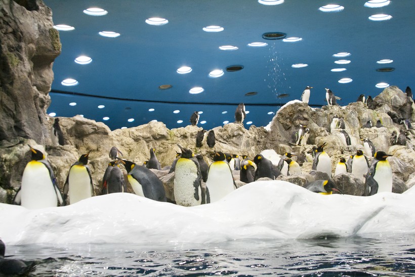 Пока же вот – шоу и не очень большой, но приличный зоопарк. Есть ягуары, львы, различные рептилии и, конечно, птицы. По зеленым лужайкам безнаказанно шатаются стада возмутительно розовых фламинго. Меня порадовал аквариум, но особенно – пингвинарий. Отличное место! Пингвины живут за стеклом и загородкой на искусственной горке; периодически на них сверху сыпется снег. А посетители стоят на медленно движущейся ленте, которая идет вдоль всего вольера. Катишься такая мимо пингвинов, они провожают тебя взглядами... или не провожают – стоят нахохлившимися столбиками.