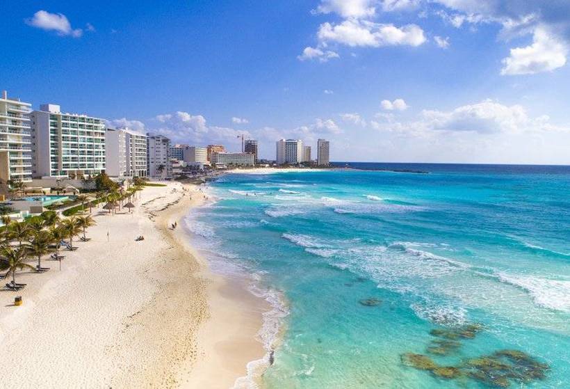 - Канкун — крупный город на побережье Карибского моря, который имеет отдельную Зону Хотельера, где все нацелено на туристов. Здесь очень длинные и большие белые пляжи, иногда бывают волны, вода нереально красивого бирюзового цвета. Основной город является достаточно опасным местом для прогулок, здесь постоянно обворовывают туристов, которые хотели посмотреть «как живут сами мексиканцы» или пошли на рынок с дорогой камерой в руках. Рекомендуется просто не покидать Зону Хотельера. Население Канкуна — почти 650 тысяч человек, город оживленный и по территории очень большой, так как почти полностью застроен 2-3-этажными домами. Минусы курорта связаны лишь с тем, что он по факту мексиканский и с центром города, который является центром криминогенной проблемы на Юкатане, связанной в первую очередь с наркотрафиком. Если не выходить из Зоны Хотельера и оценивать только ее, я ставлю курорту 9 баллов из 10!