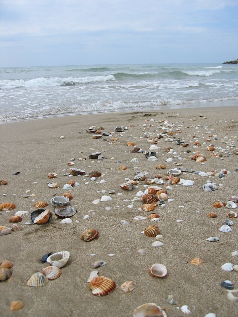 Кастельдефельс – город, в принципе, курортный. Главным и громадным его плюсом является прекрасный пляж протяженностью 5 км, оборудованный всем, что нужно отдыхающему, - душевыми, кабинками для переодеваниями, лежаками, зонтиками, пунктами проката пляжного инвентаря и, конечно, закусочными. Можно выпить по коктейлю. Цены чуть повыше, чем в городе, но это понятно – пляжный сервис, он такой. Заход в воду пологий и сам берег очень приятный, там песок; для удобства к пляжу ведут деревянные променады. Ракушек много! Я их обожаю, а потому насобирала целый пакет.