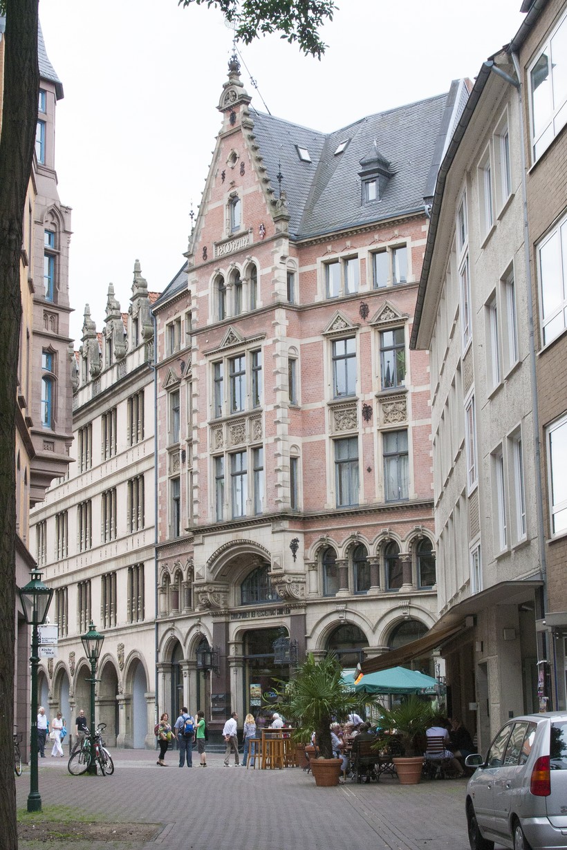Дальше мне никакие особые достопримечательности не запомнились – только сам город. Все здания, мимо которых мы проходили, были очень интересными. То фахверк проглянет, то оригинальная крыша, то опять – сюрприз! – кирпич вклинится. Было интересно разглядывать окошки, лепнину и различные вывески.