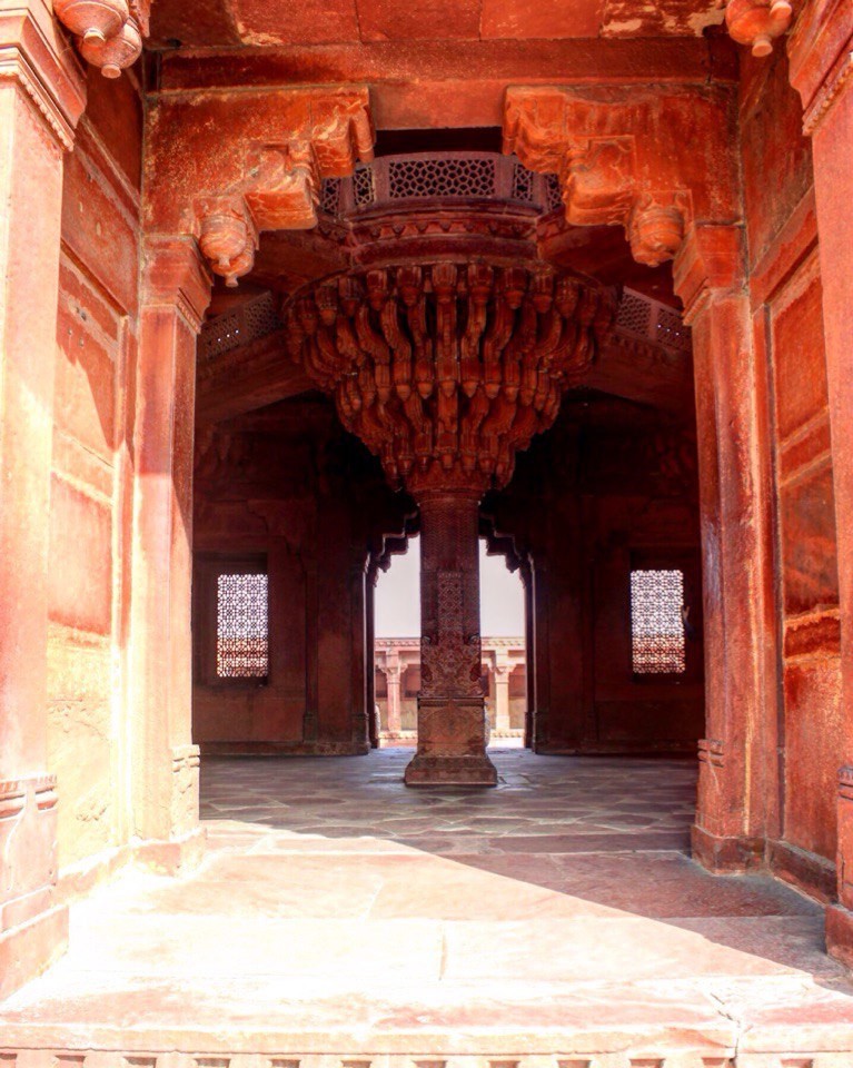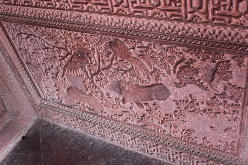 Одно из самых интересных зданий для меня стал зал аудиенций, стены которого, по приказу Акбара, украсили лепниной, присущей разным религиям.
