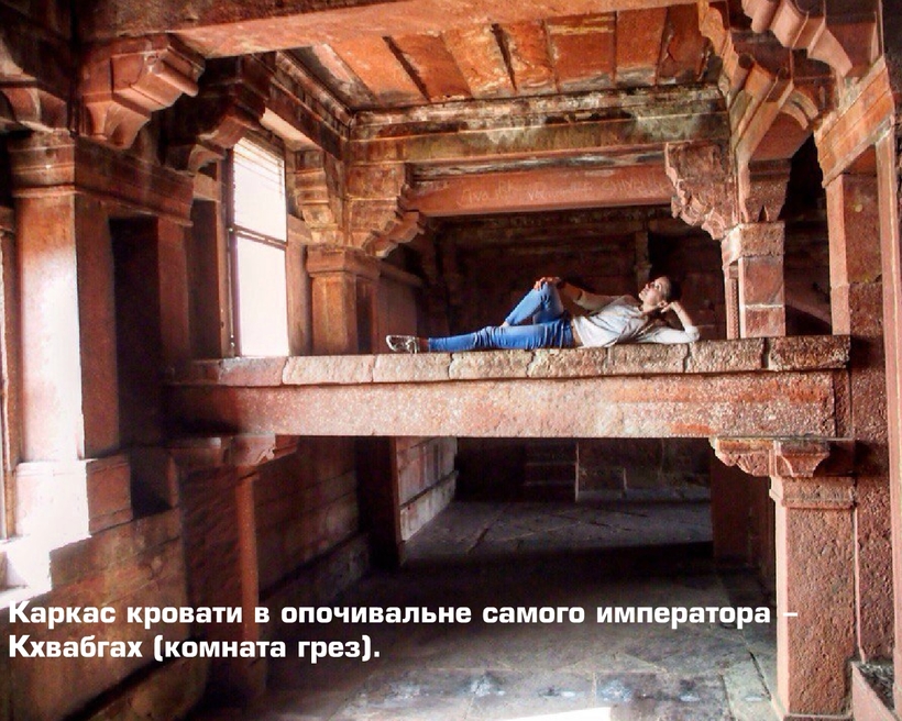 Что тут делать: любоваться на Дворец Ветров, выстроенный в пять ярусов, на некоторые можно подняться; полежать на гигантском каркасе кровати, в одной из опочивален, где Акбар проводил ночи, а также сходить на дворовую кухню, в храм и хлев с кольцами для цепей, к которым приковывали слонов.