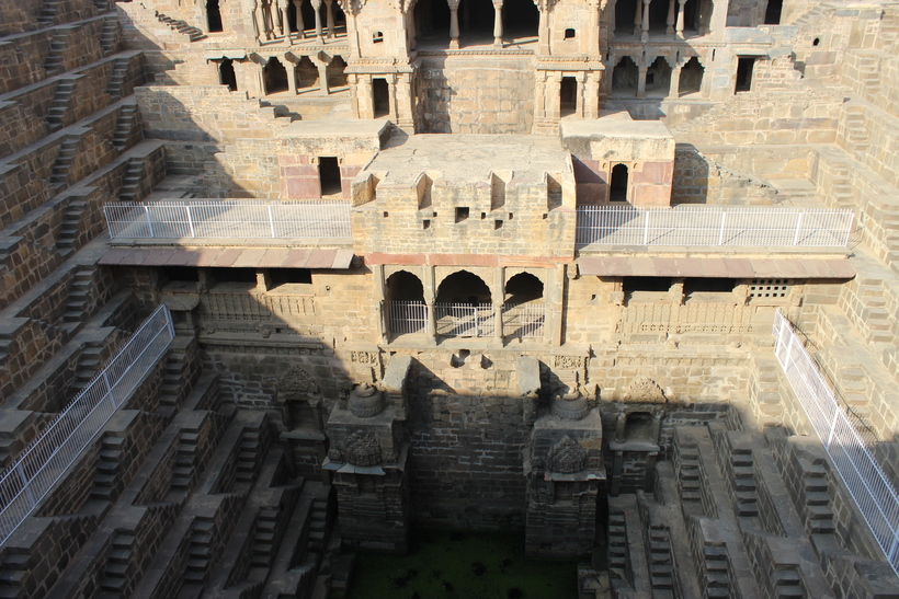 При желании можно доехать до древнего колодца Чанд Баори, расположенного рядом с Агрой. Он интересен своей перевернутой пирамидальной формой. К сожалению сейчас он отгорожен забором, а при попытке его перелезть охранник меня нагло освистал. Торопясь вылезти, я еще и порвала джинсы, зацепившись за прутья. Карма!
