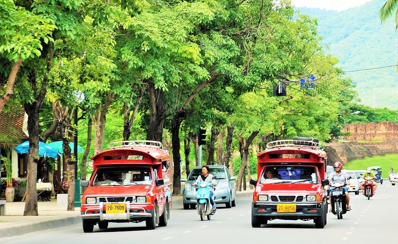 - В Чиангмае довольно много транспорта, а правил дорожного движения как таковых здесь нет. Из-за долгих светофоров тут часто образовается много пробок.