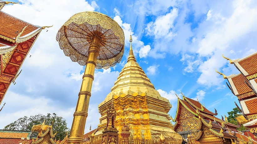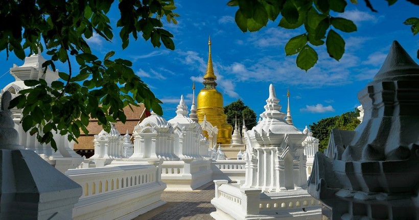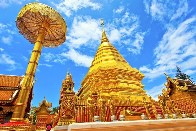 Храм Дой Сутхеп был построен в 1383 г., после того как белый слон с часть плечевой кости Будды Шакьямуни умер на этой горе.