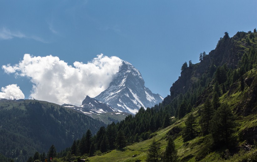 Почему так много людей ежегодно стекается в маленькую швейцарскую деревушку Церматт? Главная причина – Альпийские горы и отличный горнолыжный курорт, расположенный высоко в горах. Деревушка Церматт расположена у подножия горного массива Монте Роза, украшением которого и своей главной вершиной стал Маттерхорн – символ Швейцарии и знаменитого швейцарского шоколада Таблерон. По-немецки Matte означает луг, Horn –пик. Если собрать все воедино, получается "рог на ковре".