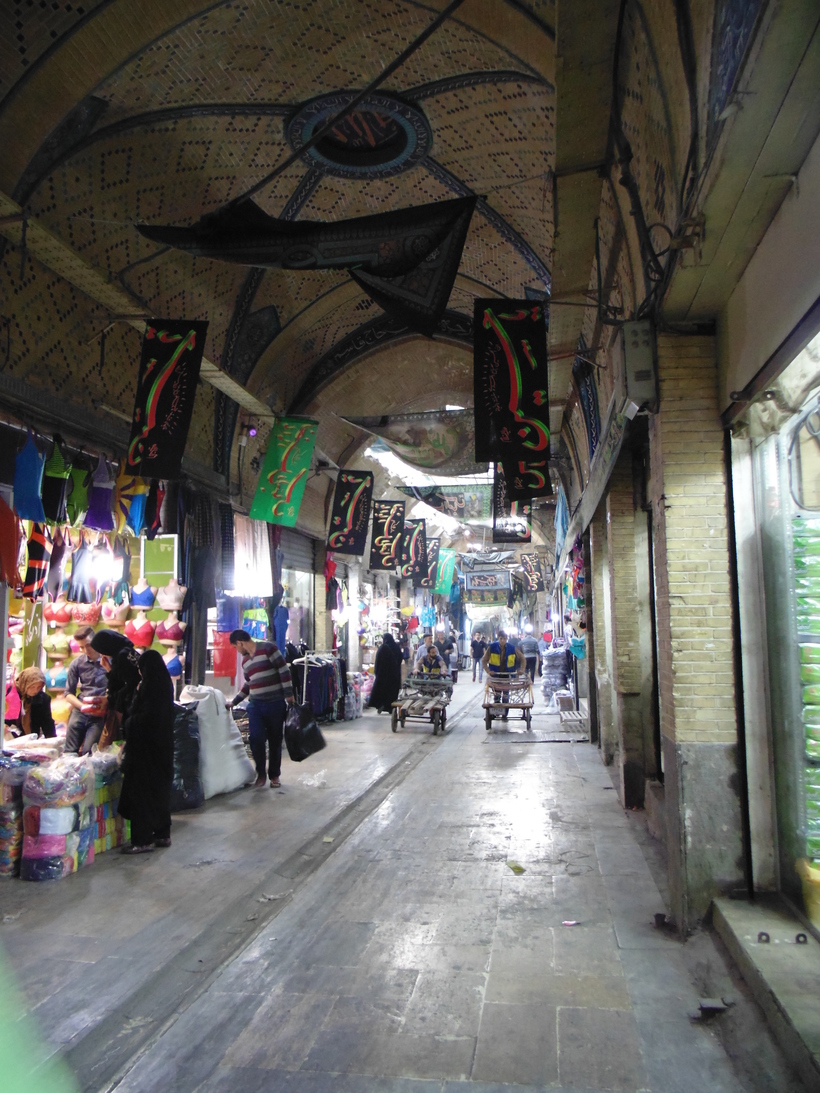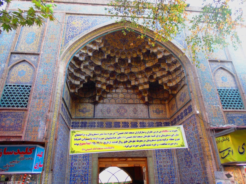 Впечатлил Тегеранский Гранд Базар. Вот где настоящая атмосфера Востока, плюс архитектура умноженная на открытый темперамент местных жителей. Но будьте внимательны когда двигаетесь вдоль торговых рядов, движение тележек с товаром такое же хаотичное как на дорогах, и без зазрения совести в лёгкую могут въехать в вас. Торговаться можно и нужно. Один торговец узнав, что мы русские, даже провёл нам гастрономическую экскурсию. Мы купили, зелёный чай, шафран, орехи, сувениры. Чаще рынок напоминал стандартный вещевой нашего разлива, но архитектура рынка впечатляет. Мы зашли в мечеть, находившуюся неподалёку.