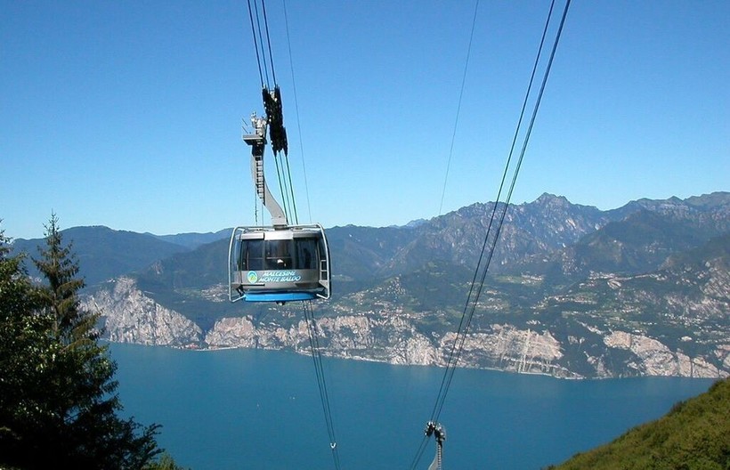 Помимо исследований всего побережья и разных локаций купания, есть ещё и вполне конкретные развлечения – канатная дорога на Монте Бальдо и термальные источники. Итак, канатная дорога привела меня на гору, абсолютно погружённую в туман и снег. На озере температура весной была +20\25, солнечно, и лёгкий морской бриз, а вот на горе меня ждал лёгкий снег. Так что одеться потеплее очень важно. Но для всех, кто сильно мёрзнет, есть ресторанчик на 2ом этаже прямо рядом с подъёмником – кормят тут не особо вкусно, но выпить кофе, разглядывая всё в громадные обзорные окна стоит.