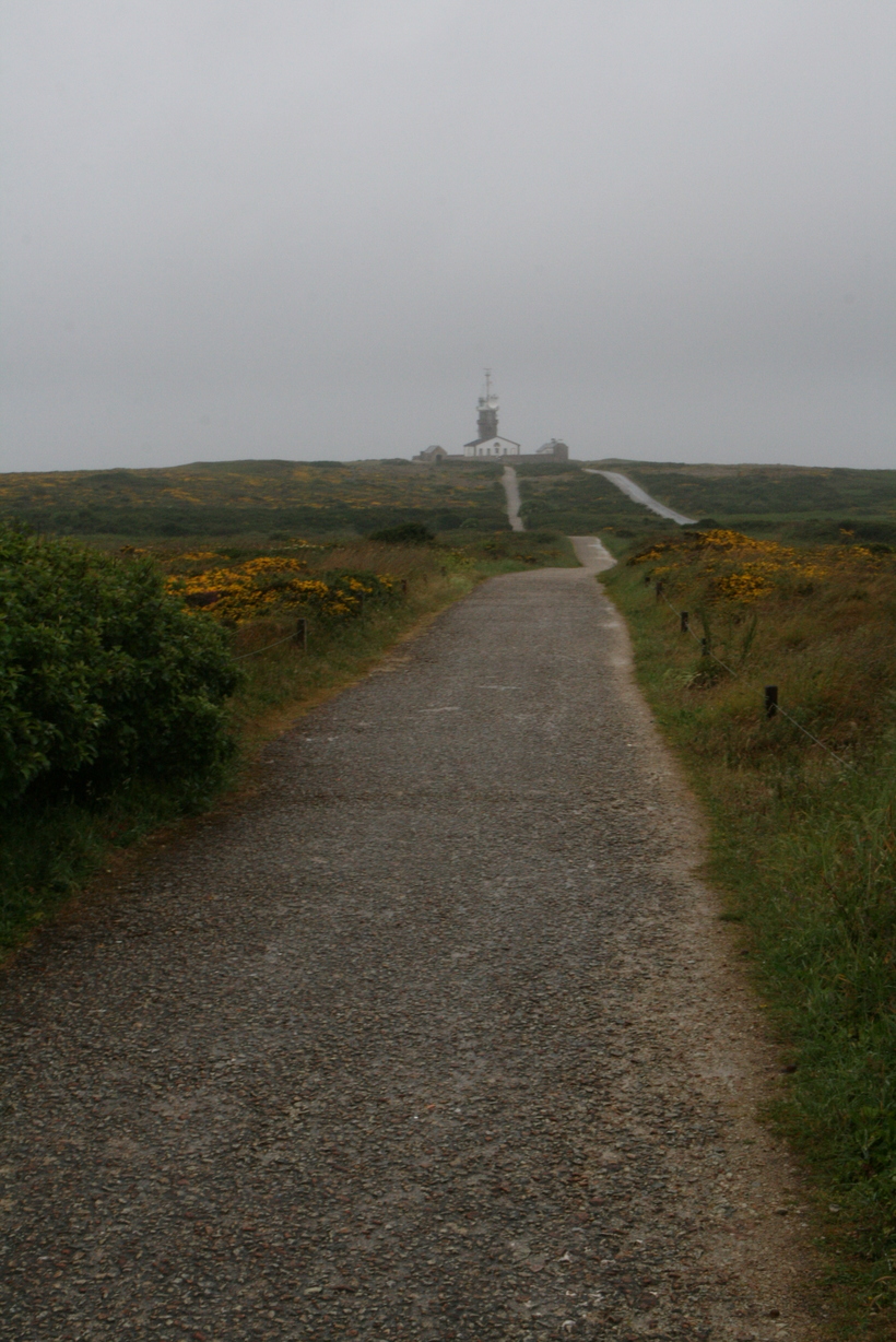 Мы пошли. Морось набиралась решимости превратиться в дождь. Дорожка шла среди низкорослых кустарников, дрока и вереска, из-за тумана видимость – метров двадцать. На дорожку из кустов выпрыгнул толстый пушистый кролик, сел столбиком, посмотрел на нас, как на ненормальных, и прыжком ушел в вереск. Никого не было вокруг, шум прибоя доносился все отчетливее, и, наконец, тропа вывела нас к смотровой площадке на мысу.