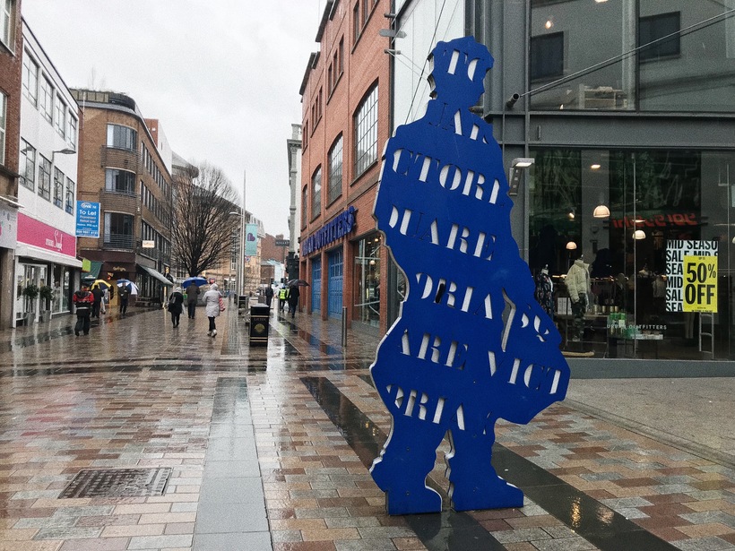 Скульптура «Дух Белфаста» напротив торгового центра символизирует судостроение и легкую промышленность – главные отрасли города.