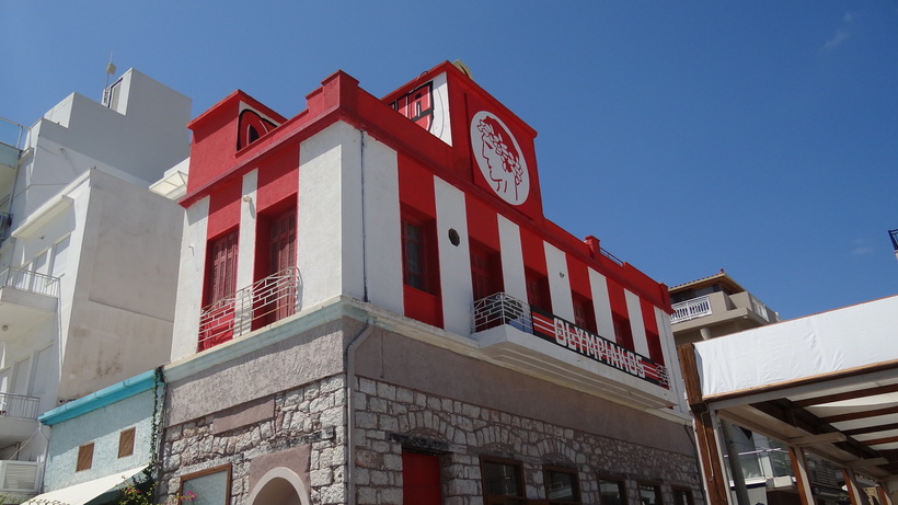 Дом привлек мое внимание тем, что его второй этаж был украшен эмблемой греческой футбольной команды «Олимпиакос» и выкрашен в красно-белые цвета клуба. Сначала я подумал, что это фирменный магазин фанатской атрибутики и думал прикупить там что-то из сувениров. Для тех, кто не в теме, поясню, что между болельщиками «Олимпиакоса» и московского «Спартака» в настоящее время имеют место дружеские отношения.