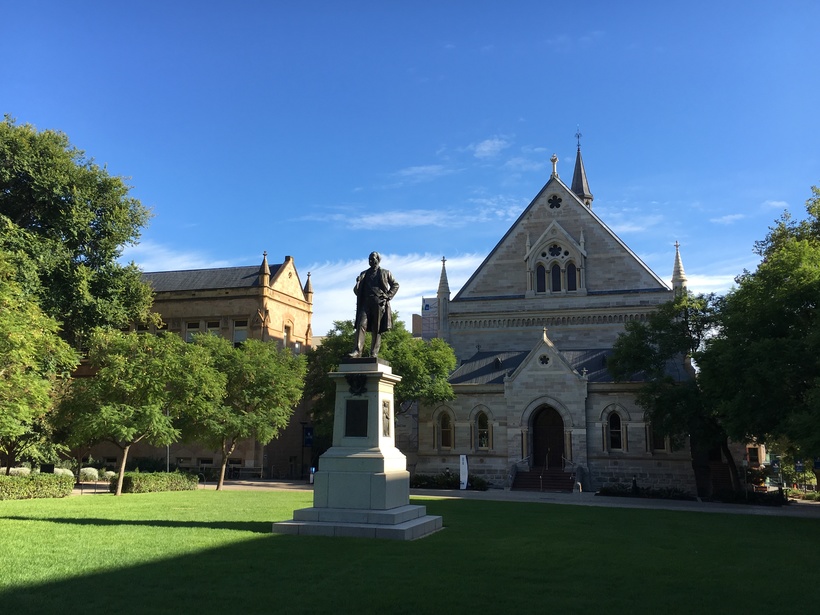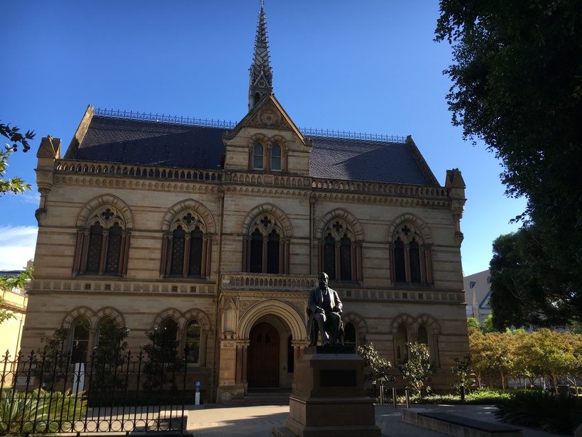 - Красивая центральная часть. Изысканные здания университетских корпусов, госучреждений, обилие памятников и скверов. Очень нетипично для Австралии, где предпочитают современную минималистскую и, на мою взгляд, довольно однообразную архитектуру. Здесь же как будто попадаешь в какой-нибудь Кембридж или уютный старинный английский городок Викторианской эпохи. Производит очень яркое и приятное впечатление.