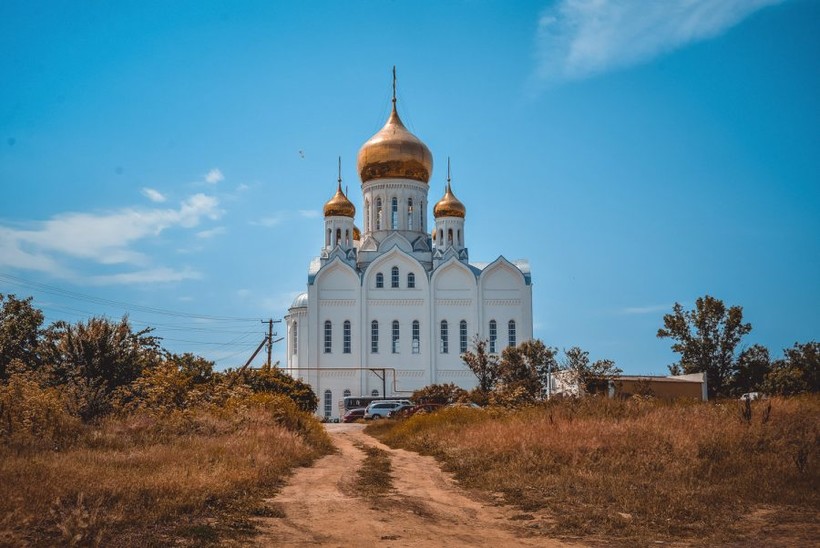 Ну что сказать, Приазовский - это совсем крохотный поселочек, в нем, насколько я поняла, всего одна улица, и та длиной не больше 1 км. Самой яркой достопримечательностью здесь является Свято-Троицки храм. Сооружение весьма внушительной, высоченное и красивой. Внутрь мы не пошли, да я и не знаю, можно ли. Но красота, надо сказать, неописуемая. Сюда, говорят, съезжаются паломники не только со всей Кубани, но и страны.