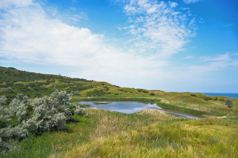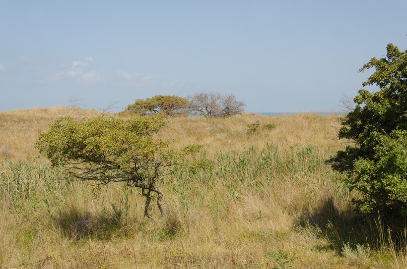 Кстати, эту местность называют "Таманской Швейцарией". Конечно, такое сочетание звучит многообещающе, но на поверку оказывается, что дано оно было Приазовскому исключительно из-за того, что здесь весьма холмистая местность. Эдакие холмоподобные мини-Альпы. Вся местность покрыта кустарниками и травой, не облагорожена, прогуливаться по ней - удовольствие сомнительное, скажу я вам.