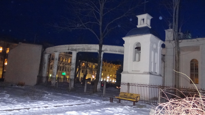 Разумеется, это не все достойные внимания объекты. Есть там и отдельные дома в стиле модерн, которые хоть и уступают рижским, но тоже весьма красивы, есть огромный действующий тюремный замок, известный как «Белый лебедь» (привет каунасской ратуше:)), есть католический костел Святого Петра в веригах, колоннада которого чем-то напомнила мне Казанский собор в Питере.