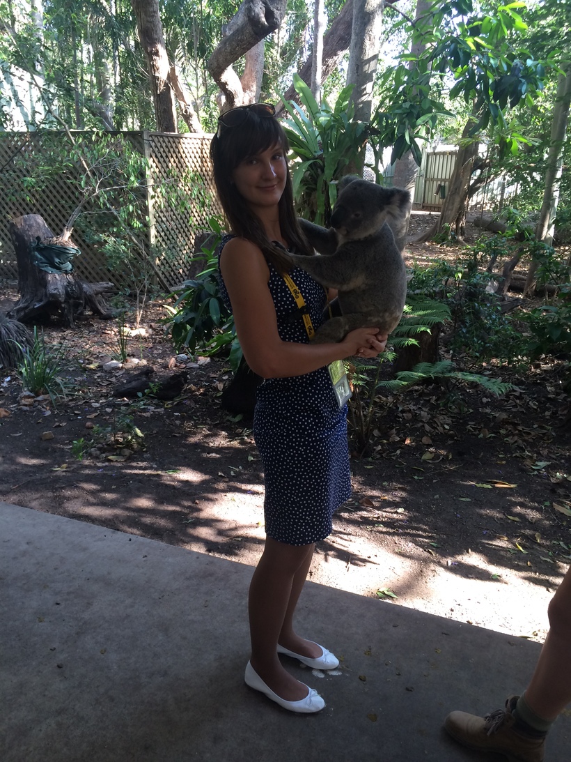 Ну а что касается самих коал, которых в этом заповеднике содержат и изучают, то они мирно висят на ветках в небольших вольерах, а вот сфотографироваться с ними можно только за отдельную плату. Причем коалу, которую сажают на ручки туристам, каждые полчаса по закону нужно менять на другую, чтобы животное не слишком переутомлялось. На ручках ее при этом дают подержать всего каких-то пару минут. Удовольствие обошлось в 25 австралийских долларов. Не даром, но я осталась довольна. Когда еще потискаешь настоящую коалу.