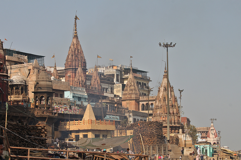 Третье – запах. В путеводителях пишут, что над городом день и ночь висит смрад сожженных тел. Вот ничего такого не было замечено. Возможно, просто в такое время приехали. Работало только два гхата, (возможно, из-за праздника Шивы), и запах жженной кости ощущался только в непосредственной близости к ним, на набережной. Гхаты – это ступенчатые сооружения, на которых происходит кремация, и на них же индусы совершают ритуальные омовения. Сжигают на специально привезенных дрова.