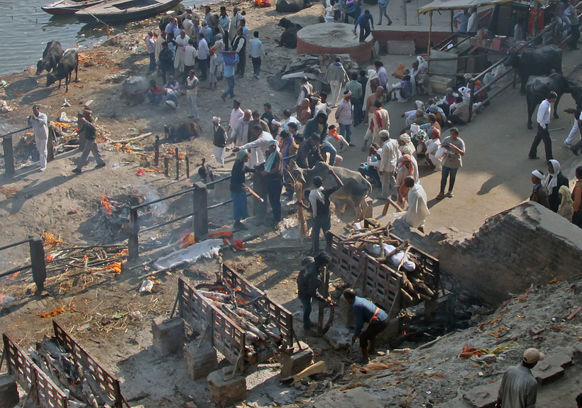 Что больше всего поражает, так это легкое и позитивное отношение индусов к смерти. Никто не плачет, не кричит, все празднично одеты, никакого черного цвета и сопутствующей похоронной атрибутики. Рядом со мной стоит молодой индус – он смотрит на погребальный костер долгим задумчивым взглядом, потом с легким вздохом, но без намека на печаль произносит – вон лежит моя бабушка, ей было 98 лет, она прожила очень хорошую жизнь, я счастлив за нее.