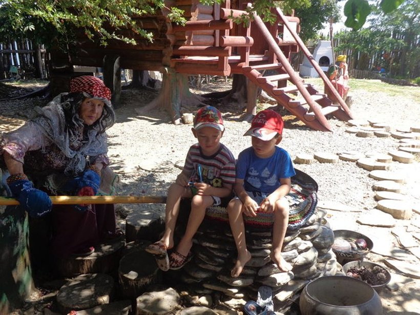 Детям тоже будет нескучно в Атамани. Здесь они посетят избушку Бабы яги, посидят в настоящей ступе и на волшебной сковородке. Да и сама Баба яга тут настоящая. Мои младшие сыновья были в восторге, когда их посадили на сковородку, диаметром около метра. Специально для маленьких посетителей на территории комплекса есть небольшой зоопарк с журавлями, гусями, козами, павлинами и кроликами. В выходной день для детворы открывают площадку с качелями и каруселями.