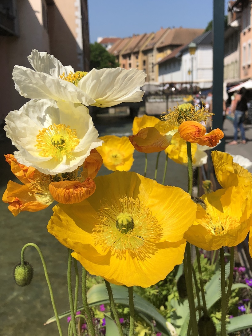 за свое непродолжительное пребывание в Лионе в мае этого (2018) года, я немного попутешествовала по округе, ездили в Перуж, Божоле и Анси, Перуж теперь как просто живой музей, а не деревушка крепость, каким он по-видимому был раньше, в Божоле был выходной и виноградники выглядели пустыми, никого не было насколько глаз хватало, место очень красивое, можно только представить что там за виды, когда начнется сбор винограда, а Анси характеризуют следующим образом: Классический горно-озерный курорт, называемый савойской Венецией из-за присутствия в центре города канала Тиу (Canal du Thiou), соединяющего озеро и речку Фье (канал является естественным ответвлением озера Анси в сторону реки Фье): пожилые люди, выходя на пенсию, стараются продать свое городское жилье и перебраться в этот райский уголок с его панорамами, чистым воздухом, здоровой деревенской едой, прогулками, катаньями на лодках, велосипедах, роликах. Маки, сыры, вино, кофе - все радует глаз приводит в греховное состояние чревоугодничества.
