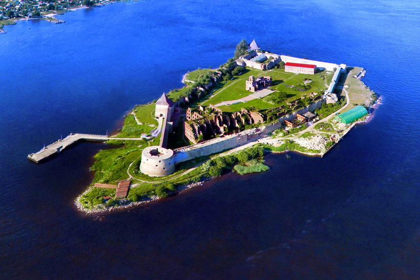 Знаменитый Шлиссельбург, известный с петровских времен как Орешек, расположенный на левом берегу у истоков реки Невы у Ладожского озера.