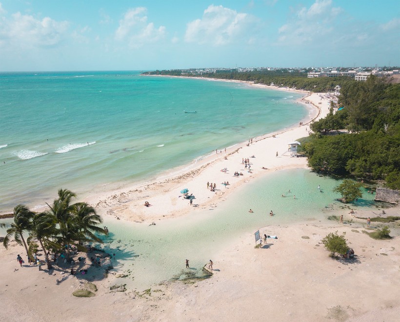 - Во-первых, здесь очень красивое море и пляж, в том числе общественный без баров прямо в центре города, возле Пятой Авеню. Но самые лучшие пляжи на ПлайяКар, на юге, туда придется пройтись или взять такси. Вода здесь нереального кристально-голубого-мятного цвета, долгий и пологий заход в море, что очень удобно. Волны, конечно же, в Плайя бывают, но обычно небольшие. Если поднялся ветер и волны, лучше переждать, сходить погулять или на экскурсию в Чичен-Ица и пр.