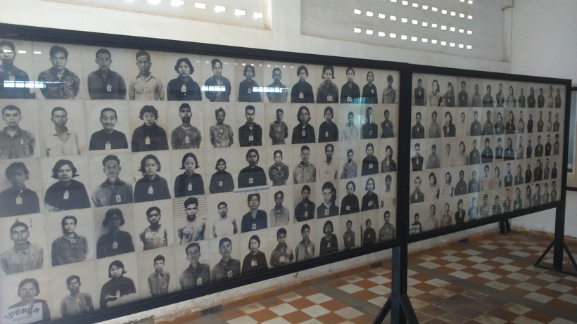 Из всех популярных мест Пномпеня самые сильные эмоции вызывают тюрьма Туол Сленг и Поля смерти. Обе достопримечательности – музеи, посвященные геноциду, который в конце 70-х устроили в стране Красные кхмеры во главе с Пол Потом. Я помнил что-то из школьного курса истории об этой трагедии, но совсем другое смотреть в глаза людям с фотографий в музее: тысячи жертв – молодежь, старики, дети – и все были зверски замучены и убиты. Многие, кажется, на момент когда их фотографировали, понимали что шансов у них нет.