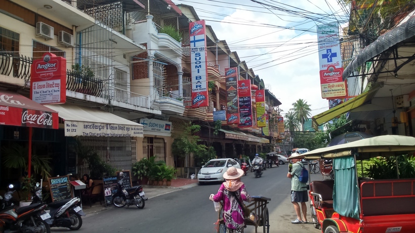 Оптимальный выбор, на мой взгляд – это туристический район в квадрате между Ночным рынком (улица №108) и Королевским дворцом, между набережной и улицей Preah Ang Yukanthor Street. Здесь масса вариантов размещения разных категорий: недорогие хостелы и гестхаусы, простенькие отели и приличные «четверки». На каждом углу – кафе, турфирмы, магазины, таксисты и все, что нужно туристу. В этом же районе или неподалеку находятся почти все достопримечательности, Центральный рынок и автовокзал, куда и откуда приезжают междугородние автобусы.