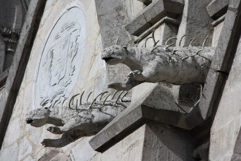 Особенно интересно рассматривать стены базилики. Тут вместо химер и горгулий на грешников устрашающе смотрят обычные эквадорские животные: муравьеды, обезьяны, козлы и даже дельфины. Время сделало каких-то животных еще более устрашающими, других – забавными.