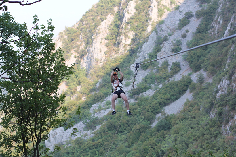 Мой совет- обязательно побывайте в этом маленьком городке. Там вы сможете и покупаться, и погулять, и…как оказалось заняться более активными видами отдыха. Каким и является Zip Line. Вообще, данный вид развлечений, как оказалось очень развит в странах бывшей Югославии, в той же Черногории я видел достаточно многих похожих развлечений, но поверьте мне - это не сравнится с тем, что я испытал в Омише. Если в двух словах, то Zip Line - это спуск в «подвешенном состоянии» по наклонному стальному тросу, причем движущей силой является вес человека или, точнее, сила земного притяжения. Один конец троса закреплён на одной вершине горы, а второй- на другой вершине горы, причём на той вершине, которая немного ниже , чтобы вы могли ехать по тросу за счёт силы тяжести. Но об этом я расскажу немного позже.