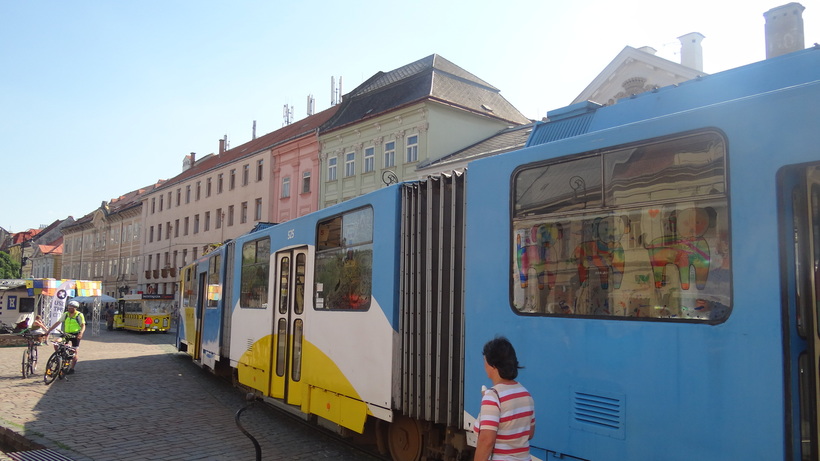 Зато на Главной площади мое внимание привлек необычный трамвай, стоящий на рельсах. Сначала я думал, что он вот-вот поедет, затем увидел, что народ заходит туда и через некоторое время выходит, а трамвай все стоит, а потом решил последовать примеру любопытных и зашел внутрь. Каково же было мое удивление, когда внутри я увидел свободно лежащие фломастеры, которыми любой желающий мог рисовать прямо на окнах трамвая. Позже я прочитал, что в некоторых городах по случаю праздников практикуется нечто подобное, но увидеть это воочию мне довелось только в Кошице.