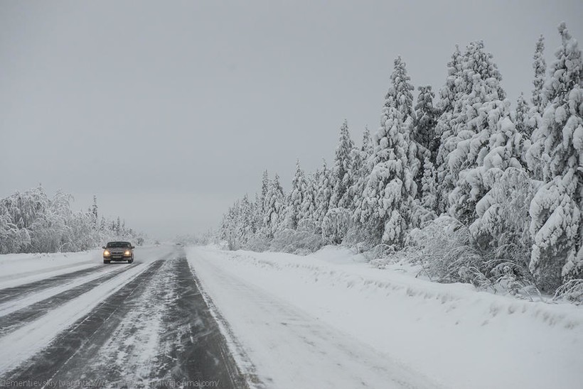 Дорога была заснеженная, красивая, но жутковатая- в определенный момент заправки, люди и автомобили закончились. Я очень верила в наш автомобиль (Сэм, привет!) и знала, что все будет хорошо, но страшно представить, если бы не.