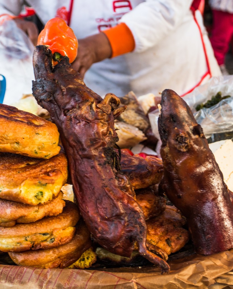 - Попробовать Куй! Это блюдо можно заказать в ресторане, или отведать на ярмарке (я так и сделала). Куй – это жареная морская свинка. Довольно вкусное мясо, приправленное мятой и специями. По вкусу что-то среднее между гусем и кроликом. К пиву просто отлично!