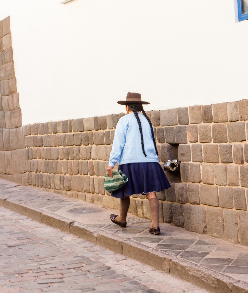 Гуляя по Куско, взгляд то и дело натыкается на храмы колониальной эпохи, невысокие домики, плотно застроившие дно долины, и уходящие вверх по холмам кварталы стихийной застройки, выложенные камнем мостовые и лестницы, бегущие то вверх, то вниз. Везде снуют тетушки в пушистых юбках, на головах у них цилиндры или шляпы-котелки из-под которых свисают милые черные косички. Они носят такую одежду сотни лет, у них свои понятия о красоте и моде. Эти милые создания в нелепой по европейским меркам одежде ко всему прочему еще и классные футболисты. Женщины в юбках играют в футбол – игру, не знающую рас и границ, и такое зрелище не встретишь в другом месте земного шара. Я рассматривала их в упор, отвесив челюсть, стреляя фотоаппаратом и возможно, вызывая недовольство своей беспардонностью - что уж возьмешь с этих туристов? Хотя, почему бы не взять? По Куско ходят ряженные, и за пару соль с удовольствием попозируют перед приезжими.
