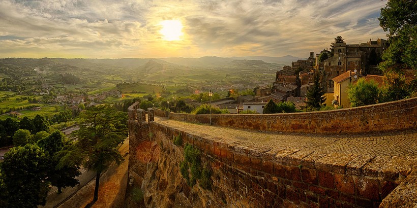 Орвието как и многие итальянские города разделен на верхний и нижний город. В верхний можно подняться на фуникулере. Именно там находится так называемый Старый город. И оттуда открывается прекрасный вид на нижний город, который уютно расположился между зелеными холмами. Также видно и крепкие стены, остатки крепости Альборнос.