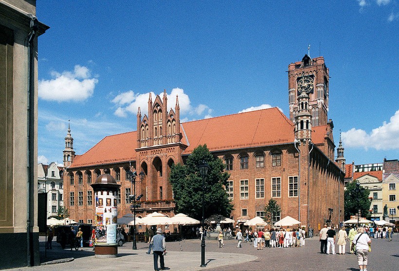 · Осмотр города лучше всего начать с Рыночной площади. Это центр комплекса готической застройки. В прямоугольной Ратуше, построенной в XIII-XIV веках в готическом стиле, сейчас расположен краеведческий музей. Очень интересно - галерея портретов польских королей, коллекция средневековых предметов искусства, собрание польской живописи, витражей. Там же, в Ратуше, есть часовая башня со смотровой площадкой. В дневные часы, до 20.00, туда может подняться каждый. Обзор Торуня сверху бесплатен.