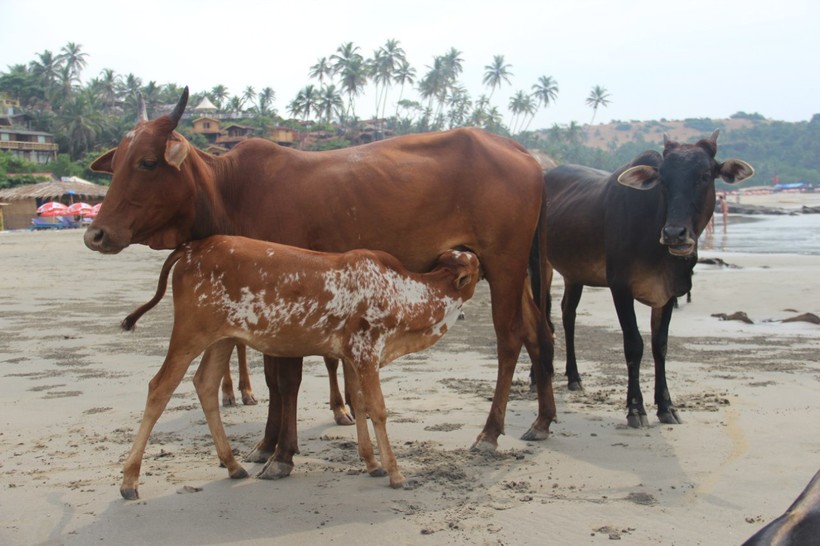 А вот Вагатор — царство коров. Они, конечно, и по всей Индии — священные животные (и, естественно, хитрые, знают об этом). Но на данном пляже эти «святые» без ложной скромности напомнят о своём статусе, если вы вдруг, забыли. Ешь банан? Ну-ка, милочка, давай делись! У одной девушки наглый пегий бычок пошарился в сумке, достав оттуда какую-то булку. Промычав: «муууу-спасибо!», вальяжно пошёл дальше по своим каким-то важным делам.