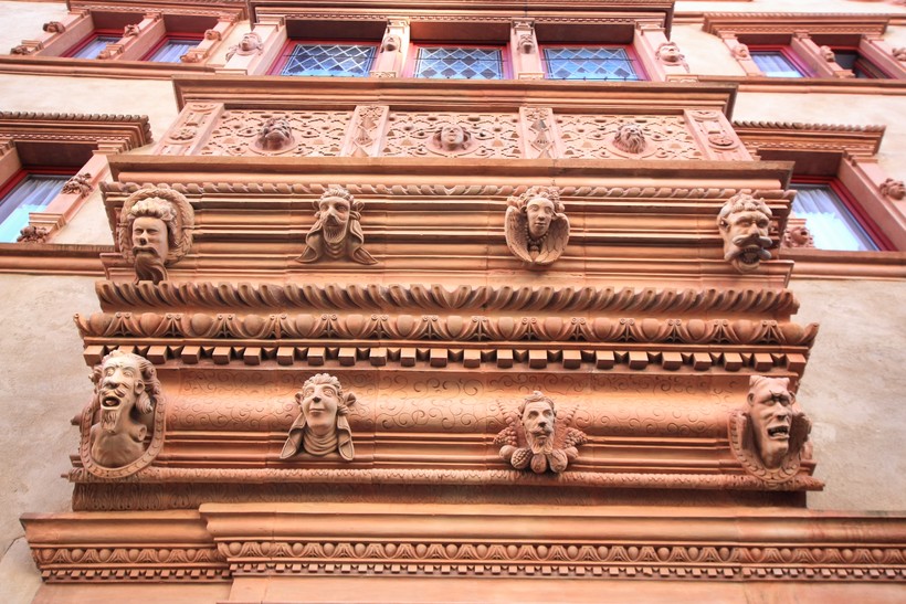 1. Маршрут по историческому центру начался с Дома голов (Hotel Maison des Têtes) (XVI в.). Этот особняк с 400-летней историей выделяется на фоне старинных домов благодаря удивительному фасаду, украшенному сотней кривляющихся физиономий. Можно потратить довольно много времени на изучение мельчайших деталей смешных, злобные, растерянных и веселых лиц, запечатленных в камне. Здание было возведено по заказу первого магистрата Кольмара Антона Бургера. Дом венчает скульптура виночерпия работы знаменитого уроженца Кольмара Ф.О. Бартольди, созданная в 1902 году, когда в доме располагалась винная биржа. Сегодня в особняке находится уютный семейный отель и ресторанчик, где подают блюда эльзасской кухни.