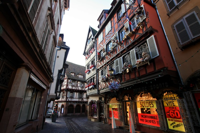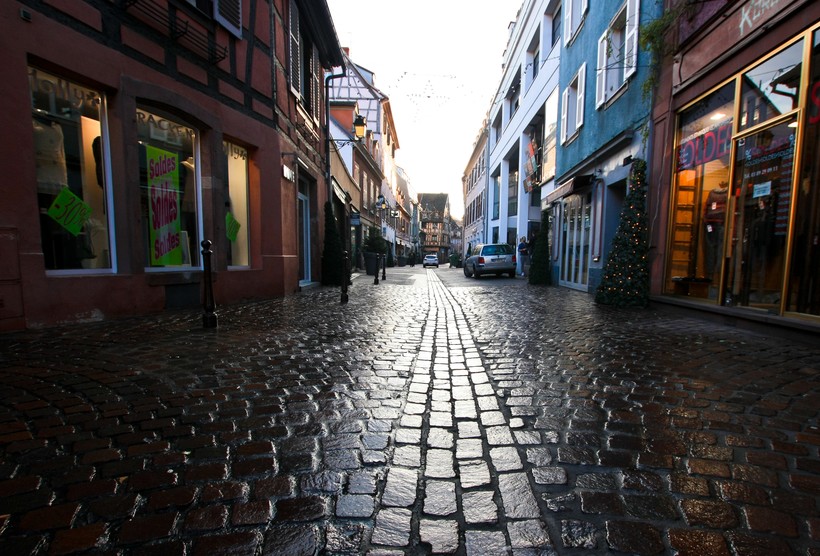 В утренние часы улочки просыпающегося Кольмара пустынны, но чуть позже они наполняются спешащими по делам местными жителями. Как в большинстве европейских городов, здесь популярны велосипеды.