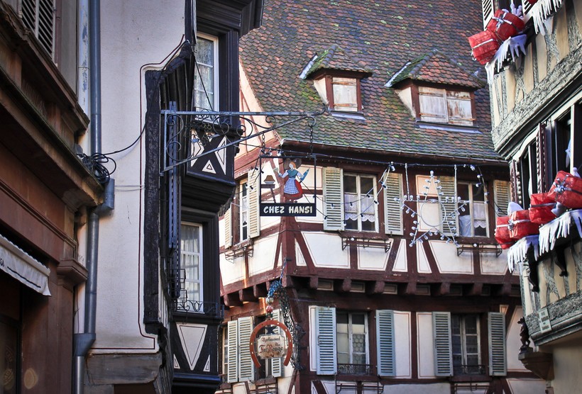 2. Почти половина домов исторического центра Кольмара представляет собой шедевры фахверковой архитектуры. Мы посетили город в канун Нового года, поэтому фасады домов были щедро украшены яркими декоративными подарками, игрушками, еловыми веточками. Всё это позволило погрузиться в атмосферу сказки. Непередаваемое впечатление!
