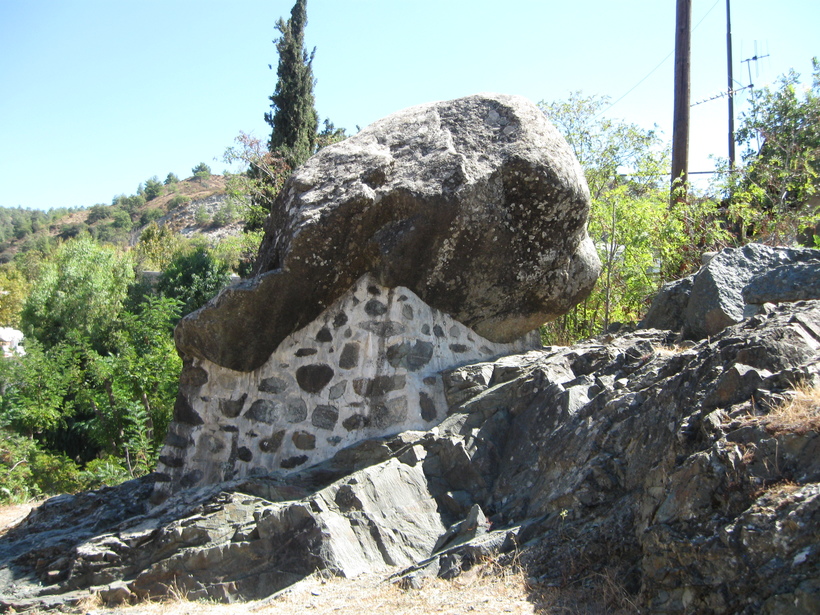 Есть ещё одна деревня, называется Какопетрия, дословно название переводится как «плохой камень». Этот камень в деревне есть, огромный. Легенда, с которой связано название – грустная. В день свадьбы молодожены, по традиции подошли к этому камню. А он сорвался, покатился по улице и задавил их. Теперь камень надежно вмурован в цементное основание, никого больше не раздавит – проверено на личном опыте.
