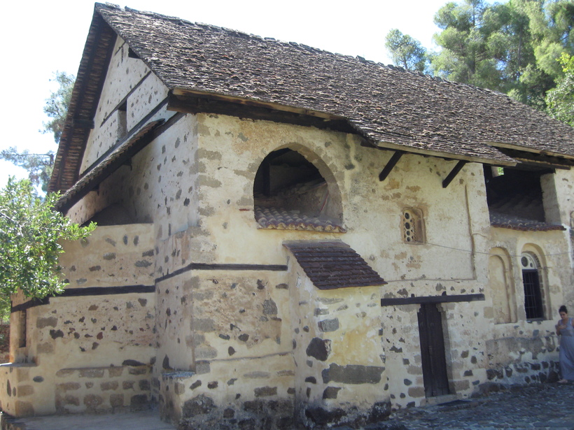 Неподалеку от Какопетрии есть интересная церковь Айос-Николаос-тис-Стегис. (Св. Николая под крышей), XI в постройки. На первый взгляд - дом домом под обычной двускатной черепичной крышей. Но стоит зайти внутрь. Очень красиво, стены и своды расписаны фресками. К сожалению, фотографировать внутри нельзя. Поэтому на фото только вид снаружи.