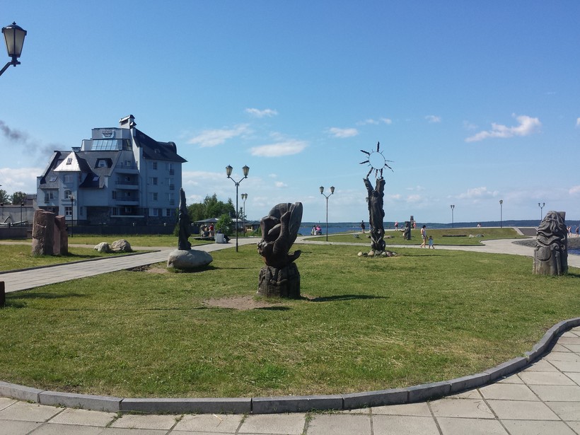 По берегу озера находятся разные интересные города, в том числе и город Петрозаводск - родной для меня. Это красивый северный город с очень симпатичной набережной, музеями, парками и скверами. Именно с него для многих туристов начинается путешествие по Карелии и на Кижи.