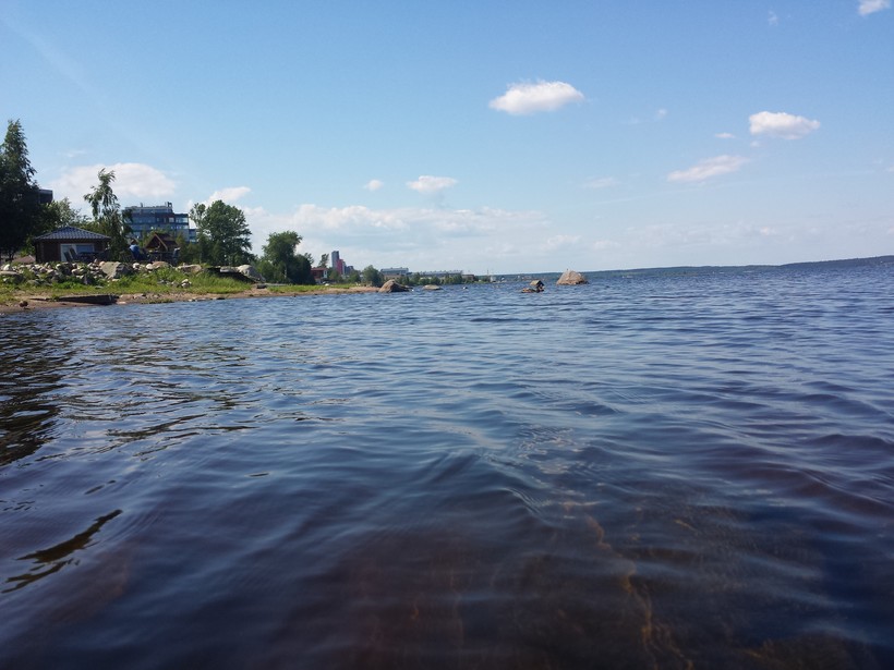 Большая протяженность берегов - очень скалистая, поэтому купаться не очень удобно. Один раз мы отдыхали компанией около Онежского озера. Так вот там под водой были сплошные скалы и валуны, так что купаться было совершенно невозможно. Выбирать места для плавания нужно аккуратно и осторожно.