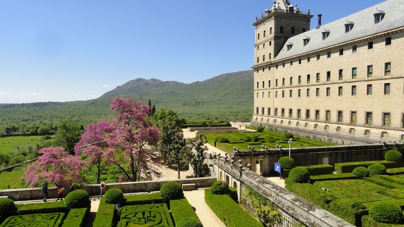 Чем же хорош этот королевский дворец? Ну, во-первых, впечатление он однозначно производит. Он... Он огромный. Это первое, о чем думаешь, когда туда приезжаешь. Стоит он у подножия горы, сам тоже на холмике, и поэтому оттуда открывается совершенно потрясающий вид. Ну и виден тоже издалека - когда подъезжаешь к нему, ещё не понимаешь его размеров, но потом реальность тебя настигает, а настигнув, она уже никуда от тебя не денется. Всё, Эскориал навеки в твоем сердце.
