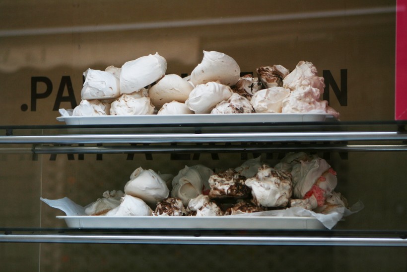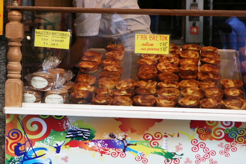 В Сен-Мало мы не обедали, купили какую-то выпечку и кофе у открытой витрины на улице. Как и везде во Франции, выпечка божественна, кофе нормальный. Я отметила, что в Сен-Мало много кондитерских с очень привлекательными витринами; особенно почему-то кондитеры любят безе.
