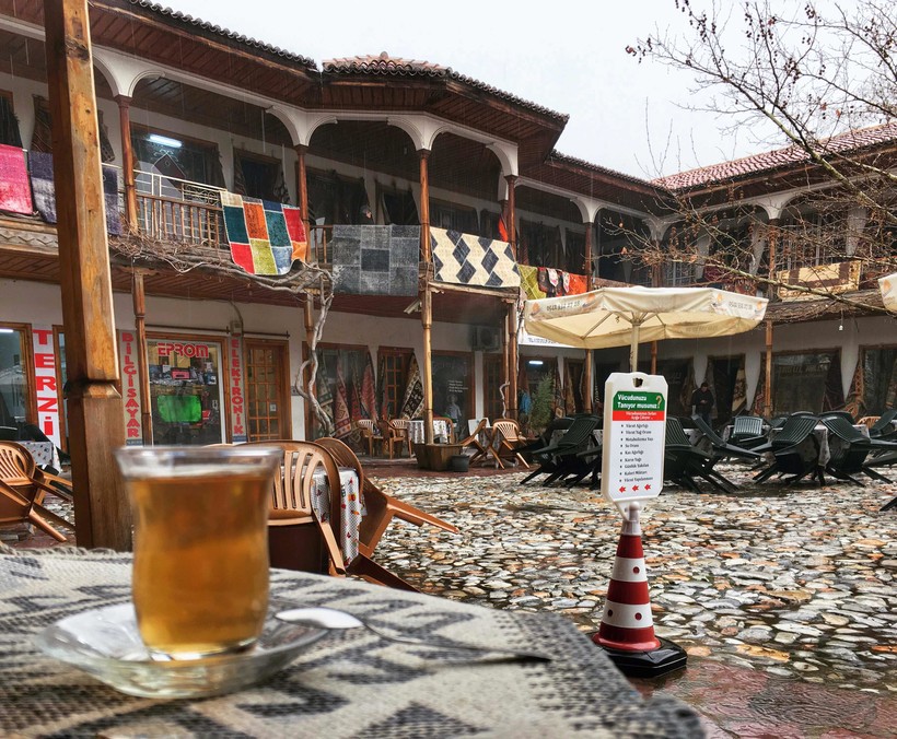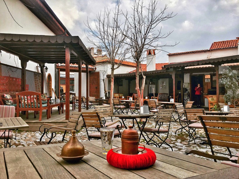 - Посетить ресторан Kahve Duragi, который находится в старом, отреставрированном в винтажном стиле особняке. Пройдите в зал на втором этаже, который оформлен в духе роскошной столовой либо выберите тихий столик внутри на первом, например, возле террасы, с видом на старую школу напротив!