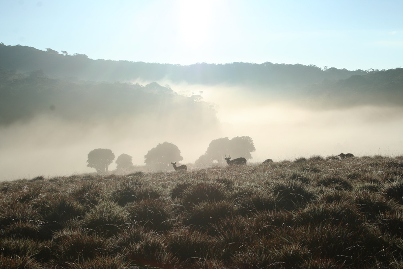Из Нуварра Элии удобно выезжать в горы и национальные парки. Мы ездили с "нашим" тукером в Хортон Плейнс - национальный парк, в котором интересно посетить водопады и два каньона - большой и маленький конец света. А ещё, в моих представлениях, именно так будет выглядеть природа в романах Джейн Остин. Приезжать лучше с утра - потом большая вероятность того, что будет облачно. А по дороге мы видели буйвола, оленей и иней, который впечатлил нашего тукера больше всего.