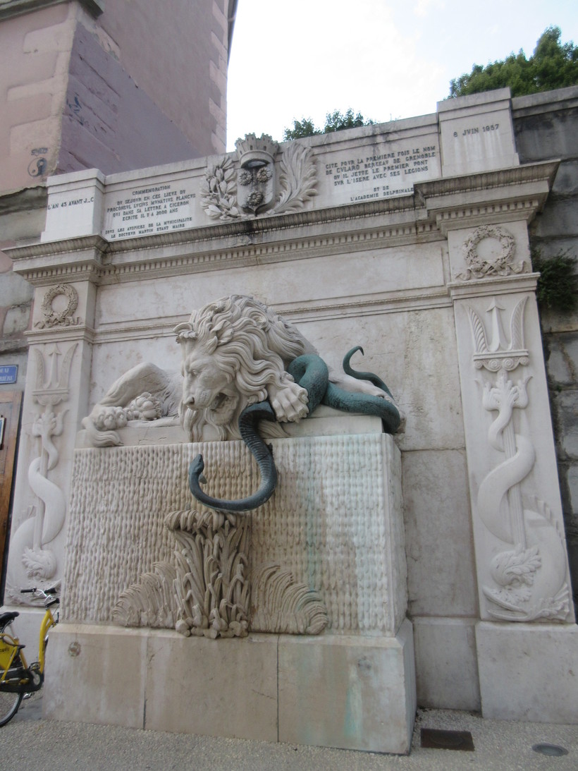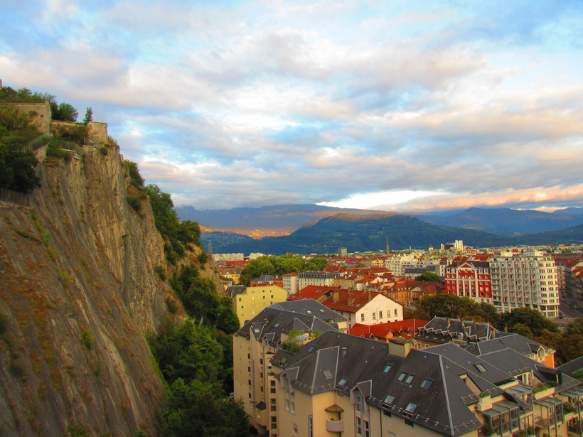 Сама Бастилья находится на невысокой горе, есть возможность подняться на дорогом фуникулере, но мы всегда стараемся проходить путь пешком, тем более подъем весьма легкий и вход получается бесплатным. Парк, в котором расположена крепость, закрывается достаточно рано и мы в итоге так и не успели далеко пройти. Жаль, ведь на обзорных площадках открывается потрясающий вид на город. Охрана выпроводила нас к выходу, пришлось искать другие развлечения. И тут Гренобль не разочаровал, прекрасный город, особенно в районе реки Изер.
